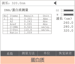 5、DNA/蛋白(bái)質測量:內(nèi)置多(duō)種測試方法,直接計(jì)算(suàn)DN×A/蛋白(bái)質樣品濃度與比率
