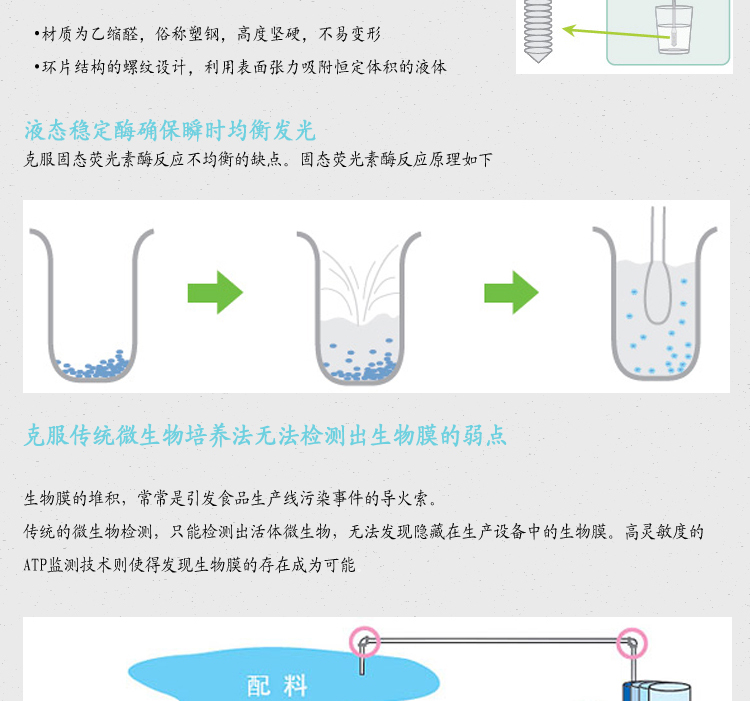 1.ATP檢測的(de)是(shì)食品殘留+微(wēi)生(shēng)物(wù)中總的(de)ATP