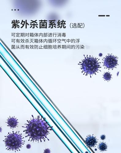 ● 可(kě)定期對(duì)箱體(tǐ)內(nèi)部進行(xíng)消毒,可(kě)有(yǒu)效殺滅箱體(tǐ)€內(nèi)循環空(kōng)氣中的(de)浮菌,從(cóng)而有(yǒu)效防止細胞培養期間(jiān)的(de)污染。