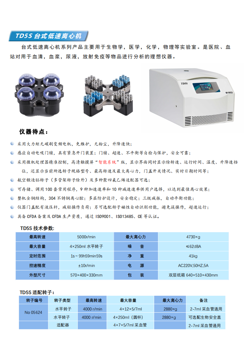 • 簡   稱:TD5S台式低(dī)速離(lí)心機(jī)