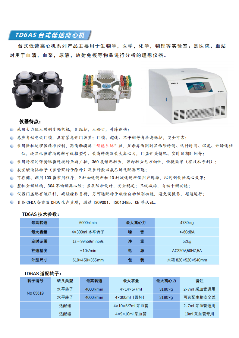 英泰_TD6AS台式低(dī)速離(lí)心機(jī)_TD6AS